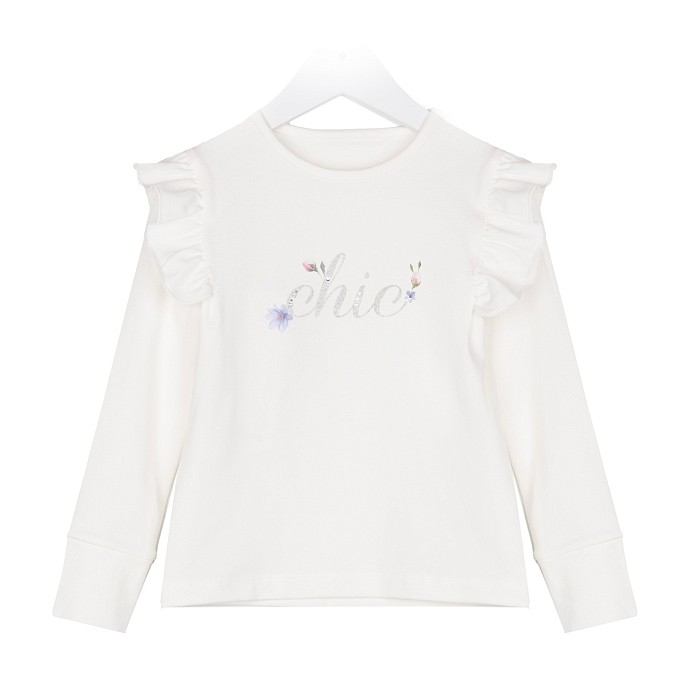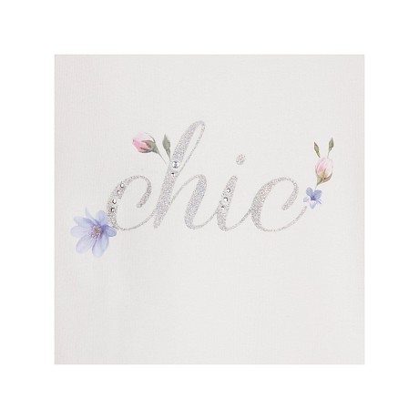 Джемпер Lapin House – это идеальный выбор для девочек! Изготовленный из 92% хлопка и 8% эластана, он украшен очаровательным принтом chic с цветочками. Нежная белая основа с яркими цветочками и блестящим написанием chic создает стильный и уютный образ. На фотографии видна аккуратная отделка на рукавах и мягкость ткани. Качество от бренда из Греции и внимание к деталям делают этот джемпер отличным выбором для вашего ребенка!