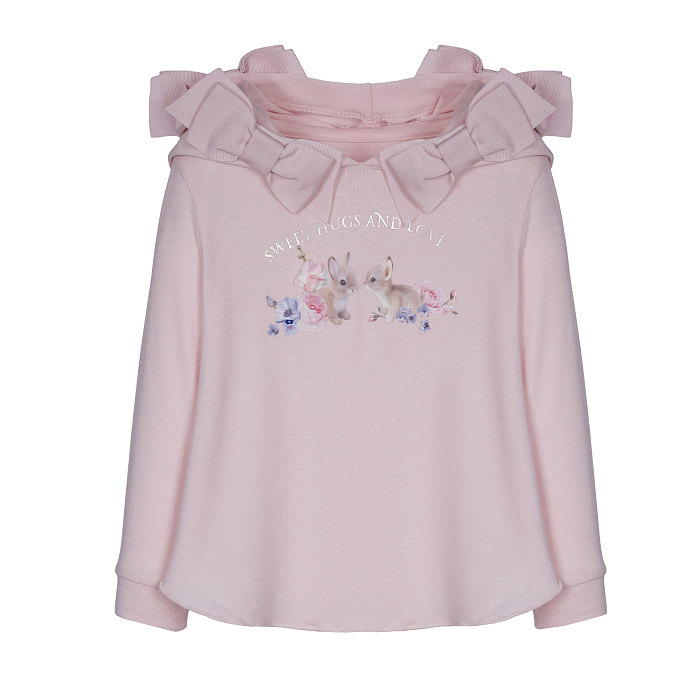 Джемпер Lapin House – это идеальный выбор для девочек! Изготовленный из 95% вискозы и 5% лайкры, он украшен очаровательными кроликами и цветами. Нежная розовая основа с яркими рисунками создает нежное и уютное настроение. На фотографии видна аккуратная розовая окантовка по краю и мягкая текстура ткани. Качество от бренда из Греции и внимание к деталям делают этот джемпер отличным выбором для вашего ребенка!