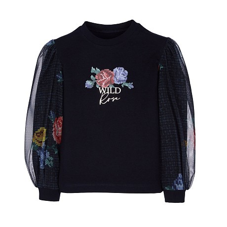 Джемпер для девочек с цветочным принтом и сетчатыми рукавами