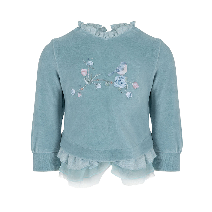 Джемпер для девочки Lapin House – это идеальный выбор для вашего маленькой принцессы! Изготовленный из комбинации хлопка, нейлона, полиамида, шелка и вискозы, он украшен очаровательным цветочным принтом с голубыми и розовыми цветами, а также нежными оборками по краю. Нежно-голубой цвет с акцентами в розовом и голубом создает романтичное и уютное настроение. На фотографиях видна аккуратная оборка по краю и мягкая текстура ткани. Качество от бренда из Греции и внимание к деталям делают этот джемпер отличным выбором для вашего ребенка!