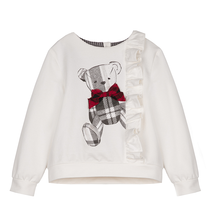 Джемпер Lapin House – это идеальный выбор для девочек! Изготовленный из 89% хлопка, 6% лайкры, 3% района и 2% тактеля, он украшен очаровательным принтом медведя в клетку и красным бантом. Белая основа с черно-белым медведем и красным бантом создает стильный и комфортный наряд. На фотографиях видна аккуратная детализация банта и мягкая текстура ткани. Качество от бренда из Греции и внимание к деталям делают этот джемпер отличным выбором для вашего ребенка!