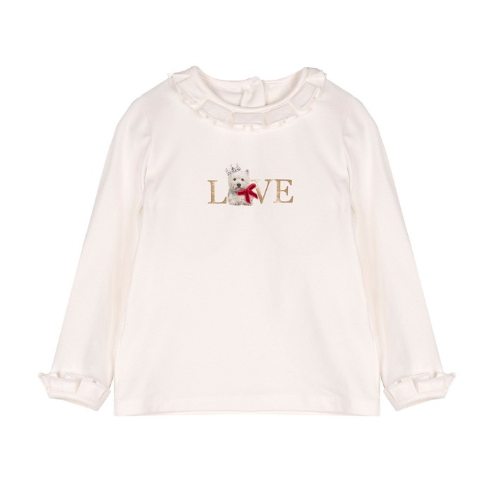 Джемпер для девочек Lapin House – это идеальный выбор для маленьких модниц! Изготовленный из 92% хлопка и 8% лайкры, он украшен очаровательным принтом LOVE и милой собакой. Нежная белая основа с золотистым текстом и красной лентой создает уютное и в то же время стильное настроение. На фотографиях видна аккуратная воланная отделка по краю и мягкая текстура ткани. Качество от бренда из Греции и внимание к деталям делают этот джемпер отличным выбором для вашего ребенка!