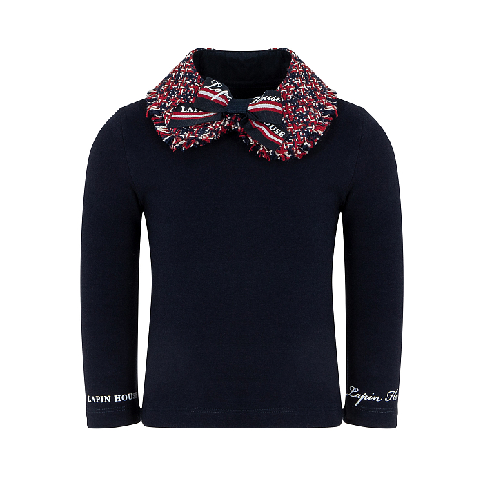 Джемпер для девочек темно-синего цвета с воротником из твида