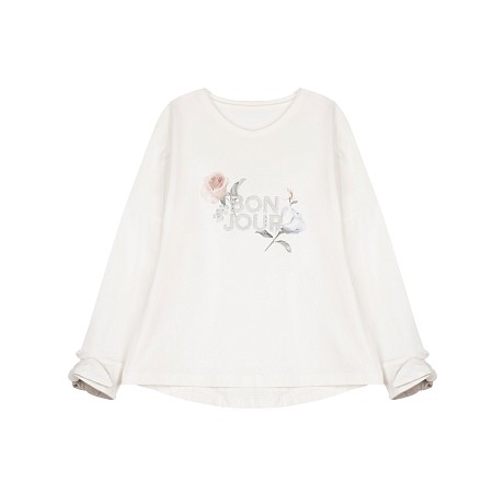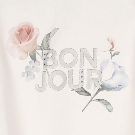 Молочный джемпер для девочек Lapin House с принтом роз и надписью Bonjour