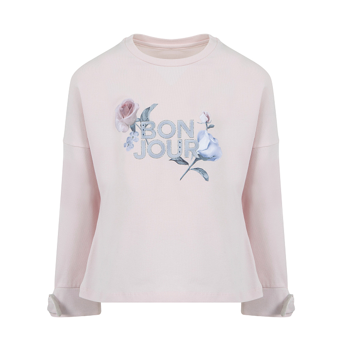 Джемпер для девочек бледно-розовый с принтом Bonjour
