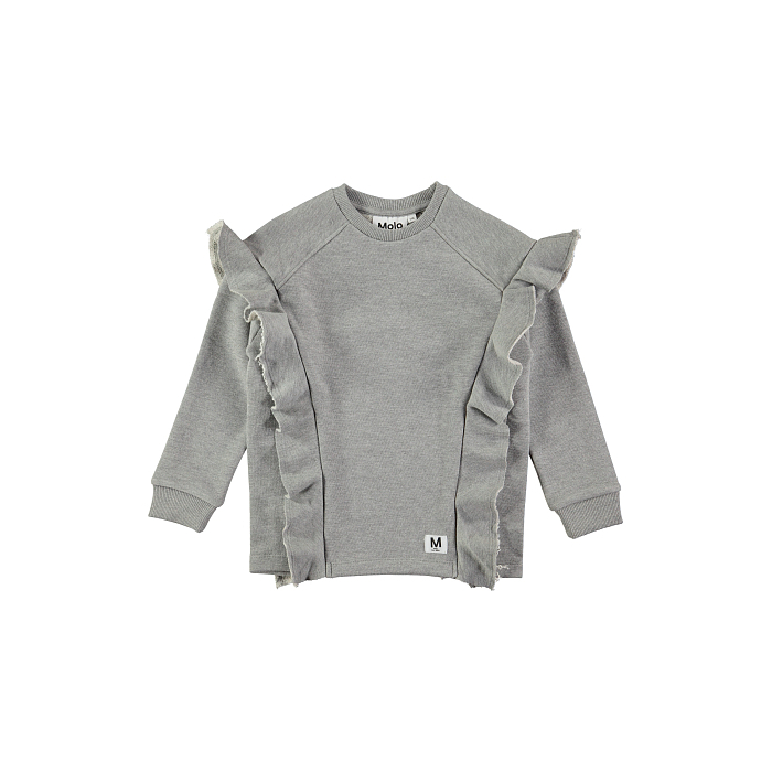 Джемпер для девочек Molo – это идеальный выбор для стильных и комфортных образов! Изготовленный из 50% хлопка и 50% вискозы, он украшен элегантными оборками на плечах. Джемпер серого цвета с нежной фактурой ткани создает неповторимый стиль и комфорт для вашего ребенка. На фотографии видны аккуратные оборки на плечах и мягкая текстура ткани. Качество от бренда из Индии и внимание к деталям делают этот джемпер отличным выбором для вашего ребенка!