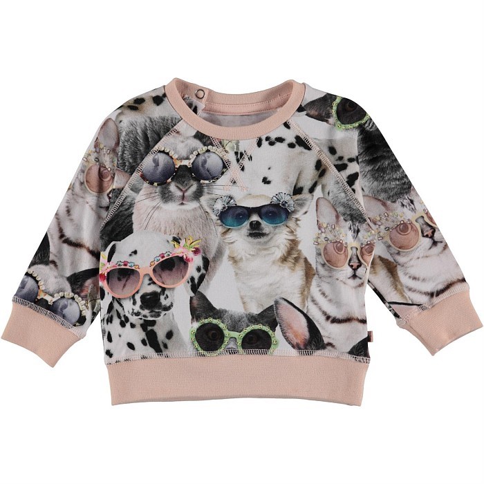 Джемпер Molo – это идеальный выбор для маленьких модниц! Изготовленный из 95% хлопка и 5% эластана, он украшен очаровательными изображениями животных и очков. Мягкая розовая окантовка по краю и удобная посадка делают этот джемпер комфортным и стильным. На фотографии видны разнообразные животные с очками, создавая веселую и модную атмосферу. Качество от бренда из Украины и внимание к деталям делают этот джемпер отличным выбором для вашего ребенка!
