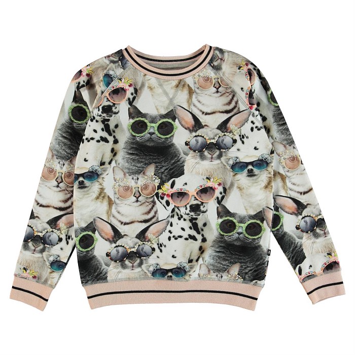 Джемпер Molo – это идеальный выбор для стильных девочек! Изготовленный из 95% хлопка и 5% эластана, он украшен очаровательными изображениями кошек и собак в солнцезащитных очках. Мягкая и эластичная ткань обеспечивает комфорт и удобство. На фотографии видна аккуратная резинка по краю рукавов и низу, а также мягкая текстура ткани. Качество от бренда из Украины и внимание к деталям делают этот джемпер отличным выбором для вашего ребенка!