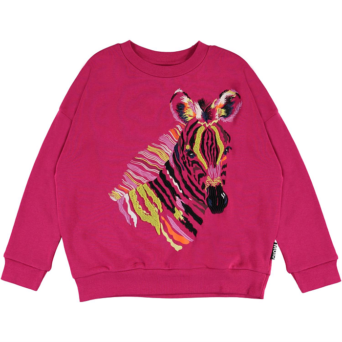Джемпер для девочек Molo – это идеальный выбор для стильных и комфортных образов! Изготовленный из 50% хлопка и 50% вискозы, он украшен ярким принтом зебры с разноцветными полосами и контрастными элементами. Джемпер с круглым вырезом горловины и эластичными манжетами подойдет для девочек любого возраста. На фотографии видна аккуратная контрастная окантовка по краю и мягкая текстура ткани. Качество от бренда из Дании и внимание к деталям делают этот джемпер отличным выбором для вашего ребенка!