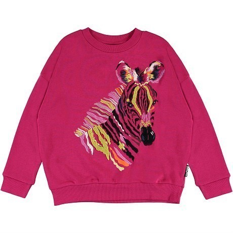 Джемпер для девочек Molo – это идеальный выбор для стильных и комфортных образов! Изготовленный из 50% хлопка и 50% вискозы, он украшен ярким принтом зебры с разноцветными полосами и контрастными элементами. Джемпер с круглым вырезом горловины и эластичными манжетами подойдет для девочек любого возраста. На фотографии видна аккуратная контрастная окантовка по краю и мягкая текстура ткани. Качество от бренда из Дании и внимание к деталям делают этот джемпер отличным выбором для вашего ребенка!