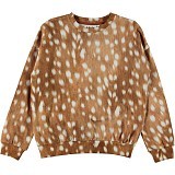 Джемпер для девочки Molo – это идеальный выбор для осенних и весенних дней! Изготовленный из 100% органического хлопка, он украшен очаровательными оленями на коричневом фоне. Нежная ткань с ярким принтом создает уютное и комфортное настроение. На фотографии видна аккуратная окантовка по краю и мягкость ткани. Качество от бренда из Дании и внимание к деталям делают этот джемпер отличным выбором для вашего ребенка!