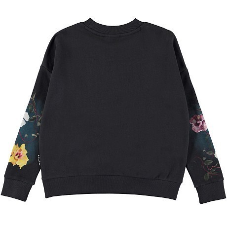 Джемпер Molo – это идеальный выбор для стильных девочек! Изготовлен из 100% органического хлопка, он украшен изысканным принтом с попугаями и цветами на фоне луны. Нежная черная основа с яркими цветами и попугаями создает неповторимую атмосферу. На фотографиях видны аккуратные детали, такие как мягкая текстура ткани, контрастная окантовка по краю и изысканный принт. Качество от бренда из Дании и внимание к деталям делают этот джемпер отличным выбором для вашего ребенка!