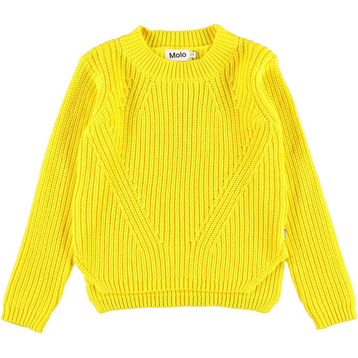 Джемпер Molo – это идеальный выбор для стильных девочек! Изготовлен из 100% органического хлопка, он оформлен узором из косичек и круглым вырезом горловины. Яркий желтый цвет подчеркивает яркость и веселый настрой. На фотографии видна аккуратная текстура ткани и мягкая фактура косичек. Качество от датского бренда Molo делает этот джемпер отличным выбором для вашего ребенка!