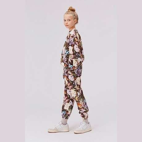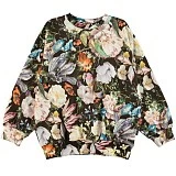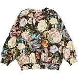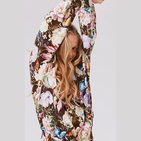 Джемпер для девочек Molo – это идеальный выбор для весны! Изготовленный из 100% органического хлопка, он украшен изысканным цветочным принтом с разнообразными цветами и листьями на черном фоне. Нежная ткань и яркие цветы создают неповторимую атмосферу весеннего сада. На фотографиях видны крупные белые, розовые и фиолетовые цветы, а также зеленые листья и ягоды. Джемпер с круглым вырезом и длинными рукавами идеально подойдет для девочек любого возраста!