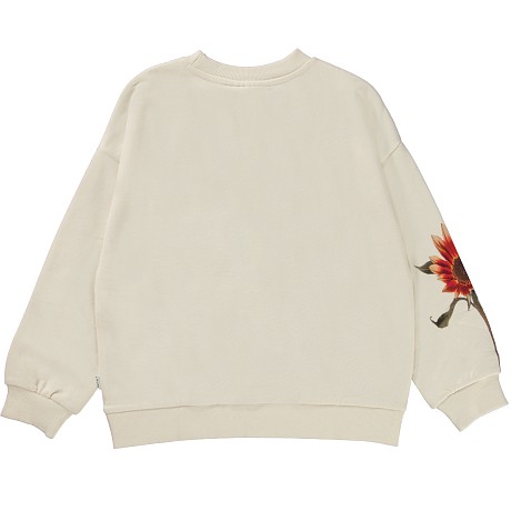 Джемпер Molo – это идеальный выбор для девочек! Изготовленный из 100% натурального хлопка, он украшен очаровательным принтом с изображением лошади и подсолнухов. Нежная белая основа с яркими красными подсолнухами и коричневой лошадью создает игривое и в то же время успокаивающее настроение. На фотографиях видна аккуратная белая окантовка по краю и мягкая текстура ткани. Качество от бренда из Дании и внимание к деталям делают эту модель отличным выбором для вашего ребенка!