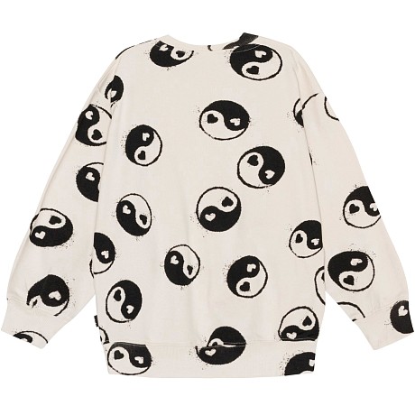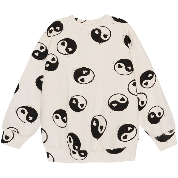 Джемпер Molo – это идеальный выбор для девочек! Изготовленный из 100% натурального хлопка, он украшен очаровательными черно-белыми символами Тай-Чи на белом фоне. Нежная текстура ткани и удобная посадка делают этот джемпер комфортным и стильным. На фотографиях видна аккуратная черная контрастная окантовка по краю и мягкая текстура ткани. Качество от бренда из Дании и внимание к деталям делают эту модель отличным выбором для вашего ребенка!