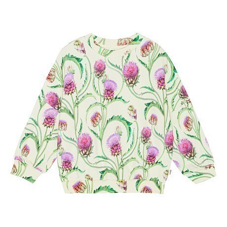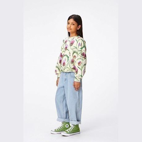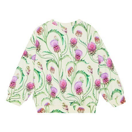 Джемпер Molo – это идеальный выбор для маленьких модниц! Изготовленный из 100% натурального хлопка, он украшен очаровательным цветочным принтом с розовыми и фиолетовыми цветами на зеленых листьях. Нежная текстура ткани и удобная посадка делают этот джемпер комфортным и стильным для вашего ребенка. На фотографиях видна аккуратная окантовка по краю и мягкая текстура ткани. Качество от бренда из Дании и внимание к деталям делают эту одежду отличным выбором для вашего малыша!