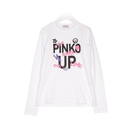 Джемпер Pinko Up – это идеальный выбор для девочек! Изготовленный из 100% хлопка, он украшен ярким принтом с надписью "Pinko Up" и различными символами. Нежная белая основа с яркими цветными элементами создает стильный и модный образ. На фотографиях видна аккуратная вышивка по краю и мягкость ткани. Качество от бренда из Италии и внимание к деталям делают этот джемпер отличным выбором для вашего ребенка!