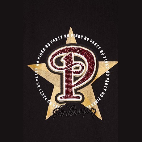 Джемпер Pinko Up – это идеальный выбор для девочек! Изготовленный из 100% хлопка, он украшен стильным принтом звезды и логотипом Pinko Up. Нежная черная основа с ярким золотым и красным принтом создает модный и уютный образ. На фотографии видна аккуратная вышивка логотипа и золотая звезда с красным "P". Качество от бренда из Италии и внимание к деталям делают этот джемпер отличным выбором для вашего ребенка!