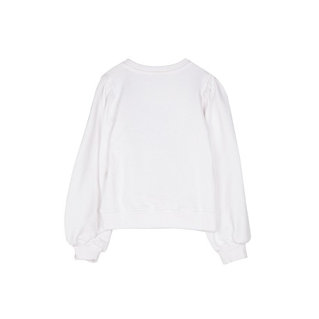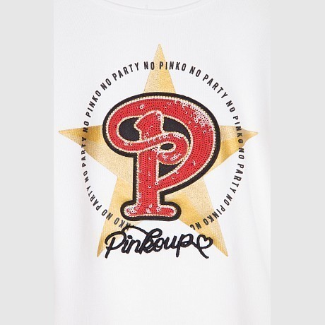 Джемпер Pinko Up – это идеальный выбор для девочек! Изготовленный из 100% хлопка, он украшен ярким принтом звезды и логотипа Pinko Up. Нежная белая основа с красными и золотыми акцентами создает стильный и в то же время уютный образ. На фотографии видна аккуратная белая окантовка по краю и мягкая текстура ткани. Качество от бренда из Италии и внимание к деталям делают этот джемпер отличным выбором для вашего малыша!