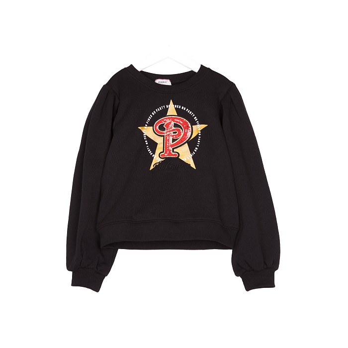 Джемпер Pinko Up – это идеальный выбор для вашего маленькой модницы! Изготовленный из 100% хлопка, он украшен ярким принтом звезды с буквой P в центре. Нежная черная основа с золотистой звездой и красной буквой создает стильный и современный образ. На фотографиях видна аккуратная окантовка по краю и мягкая текстура ткани. Качество от итальянского бренда и внимание к деталям делают этот джемпер отличным выбором для вашего ребенка!