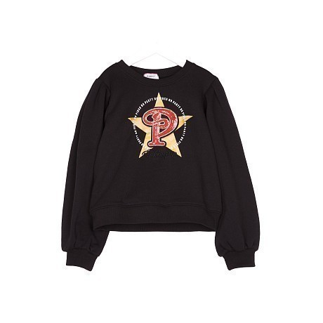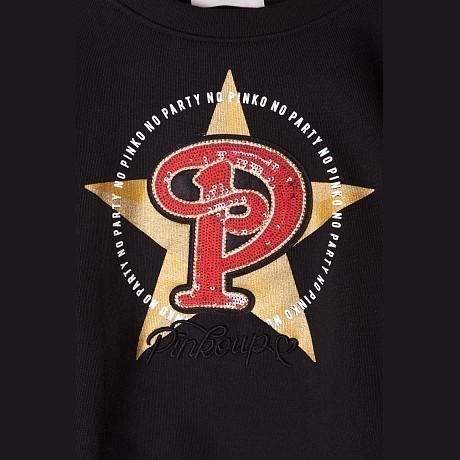Джемпер Pinko Up – это идеальный выбор для вашего маленькой модницы! Изготовленный из 100% хлопка, он украшен ярким принтом звезды с буквой P в центре. Нежная черная основа с золотистой звездой и красной буквой создает стильный и современный образ. На фотографиях видна аккуратная окантовка по краю и мягкая текстура ткани. Качество от итальянского бренда и внимание к деталям делают этот джемпер отличным выбором для вашего ребенка!