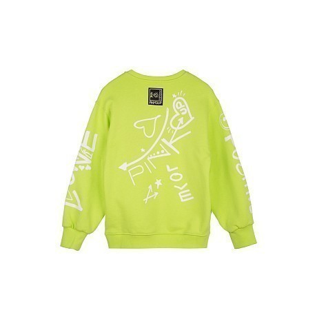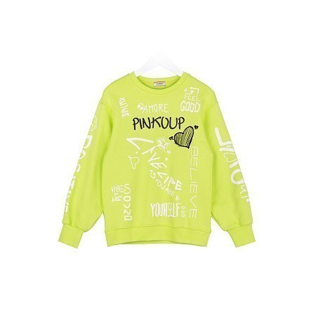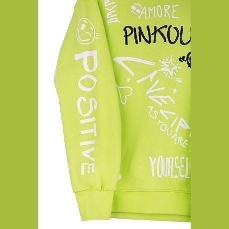 Джемпер Pinko Up – это идеальный выбор для стильных девочек! Изготовленный из 100% хлопка, он украшен ярким принтом и надписями, которые создают неповторимую атмосферу. На фотографии видны различные надписи, такие как "Pinkoup", "Live Life", "Believe", "Feel Good", а также сердечки и другие элементы дизайна. Джемпер с круглым вырезом горловины и длинными рукавами идеально подойдет для повседневной носки. Качество от итальянского бренда Pinko Up и внимание к деталям делают этот джемпер отличным выбором для вашего ребенка!