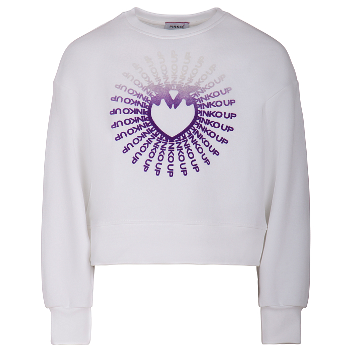 Джемпер Pinko Up – это идеальный выбор для стильных девочек! Изготовленный из 100% хлопка, он украшен очаровательным принтом сердца с надписями "PINKO UP" вокруг. Нежная белая основа с ярким фиолетовым принтом создает игривое и в то же время элегантное настроение. На фотографиях видна аккуратная окантовка по краю и мягкость ткани. Качество от итальянского бренда и внимание к деталям делают этот джемпер отличным выбором для вашего ребенка!