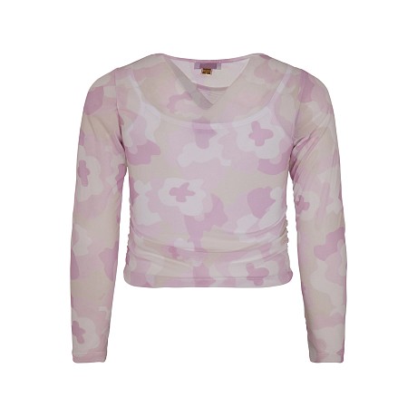 - 🎨 Дизайн: розовые и белые цветы, округлая горловина, длинные рукава