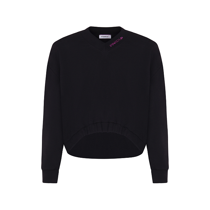 Джемпер Pinko Up – это идеальный вариант для девочек 10-14 лет! Изготовлен из 94% хлопка и 6% эластана, он сочетает в себе мягкость и эластичность. Черный цвет с V-образным вырезом и эластичным низом делают эту модель стильной и удобной. На фото видна элегантная форма джемпера с V-образным вырезом и аккуратной вышивкой бренда на воротнике. Джемпер идеально подойдет для активного отдыха или повседневной носки.