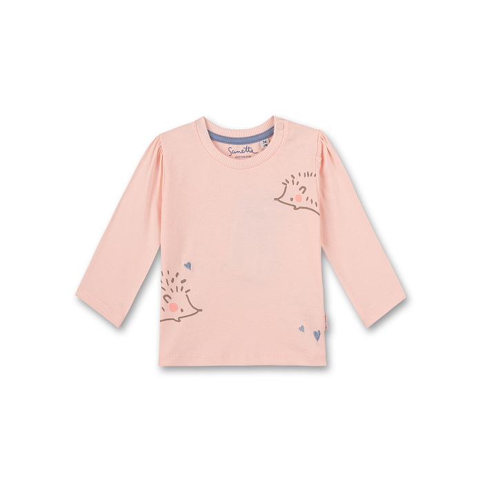 Джемпер Sanetta – это идеальный выбор для девочек! Изготовленный из 100% органического хлопка, он обеспечивает нежную и комфортную посадку. Джемпер украшен милыми изображениями ежиков и сердечек, что делает его еще более привлекательным и уютным. Нежно-розовый цвет подчеркивает мягкость и нежность детской одежды. На фотографиях видны удобные рукава с пуговицами и округлый вырез горловины. Джемпер Sanetta – отличный вариант для вашего ребенка!