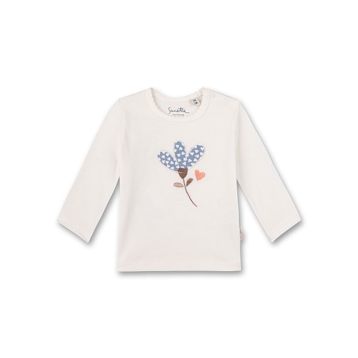 Джемпер для девочек Sanetta – это идеальный выбор для маленьких модниц! Изготовленный из 100% органического хлопка, он украшен очаровательным цветочным принтом с голубыми лепестками и красными сердечками на белом фоне. Нежная ткань с яркими деталями создает уютное и в то же время стильное настроение. На фотографии видна аккуратная детализация цветка и мягкая текстура ткани. Качество от бренда из Германии и внимание к деталям делают этот джемпер отличным выбором для вашего ребенка!