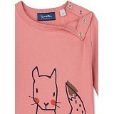 Джемпер Sanetta – это идеальный выбор для девочек! Изготовленный из 95% органического хлопка и 5% эластана, он украшен очаровательным принтом лисы. Нежная розовая основа с ярким черным и красным принтом создает игривое и в то же время уютное настроение. На фотографии видна аккуратная черная контрастная окантовка по краю и мягкая текстура ткани. Качество от бренда Sanetta и внимание к деталям делают эту одежду отличным выбором для вашего ребенка!