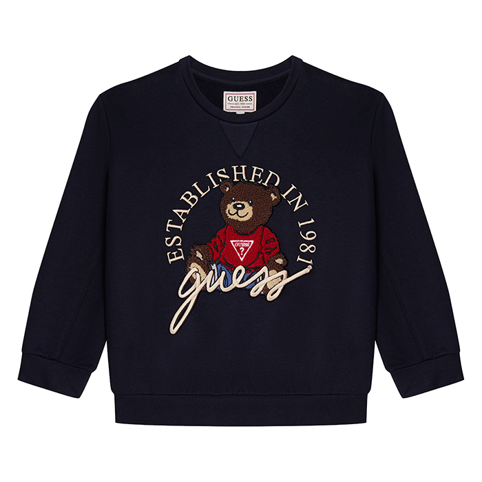 Джемпер Guess – это идеальный выбор для мальчиков! Изготовленный из 100% хлопка, он украшен очаровательным принтом медведя в красной куртке и надписью Established in 1981. Мягкая ткань и удобная посадка делают этот джемпер идеальным для повседневной носки. На фотографиях видна аккуратная вышивка медведя с надписью и логотипом Guess. Качество от бренда из США и внимание к деталям делают эту модель отличным выбором для вашего мальчика!