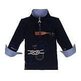 Джемпер для мальчиков Lapin House – это идеальный выбор для стильных и активных юных моряков! Изготовлен из комбинации 86% хлопка, 6% тактеля, 4% полиуретана и 4% лайкры с наполнителем 100% полиэстер. Джемпер украшен морским принтом с изображением руля, якоря и креплением из веревки. Нежная ткань с комбинацией материалов обеспечивает комфорт и уют. На фотографиях видна аккуратная белая окантовка по краю и мягкая текстура ткани. Качество от бренда из Греции и внимание к деталям делают этот джемпер отличным выбором для вашего мальчика!
