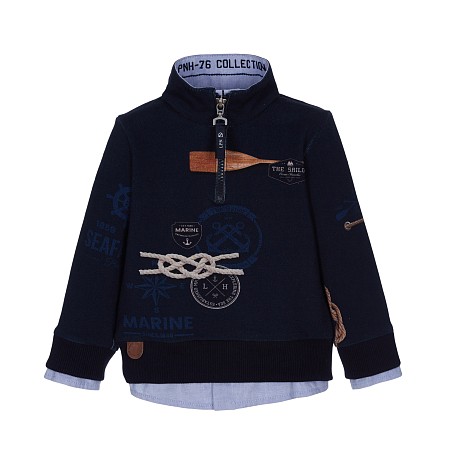 Джемпер Lapin House – это идеальный выбор для юных моряков! Изготовленный из 96% хлопка и 4% лайкры, он украшен морскими принтами, включая якори и рули. Нежная текстура ткани и удобная посадка создают комфорт и стильный образ. На фотографии видна аккуратная белая окантовка по краю и мягкая текстура ткани. Качество от бренда из Греции и внимание к деталям делают этот джемпер отличным выбором для вашего мальчика!