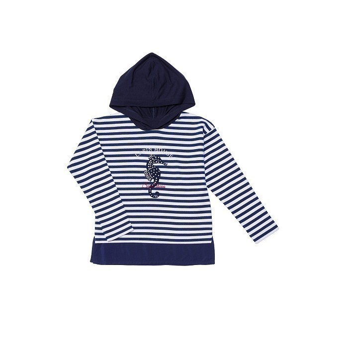 Джемпер Lapin House – это идеальный выбор для девочек! Изготовленный из 83% вискозы, 7% полиэстера, 6% люрекса и 4% эластана, он украшен очаровательным морским принтом с морским коньком. Джемпер с капюшоном и длинными рукавами идеально подойдет для девочек любого возраста. На фотографии видна аккуратная морская тематика с морским коньком и люрексовыми элементами, создавая нежный и уютный настрой. Качество от бренда из Греции и внимание к деталям делают этот джемпер отличным выбором для вашего ребенка!