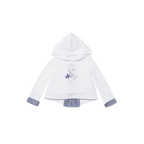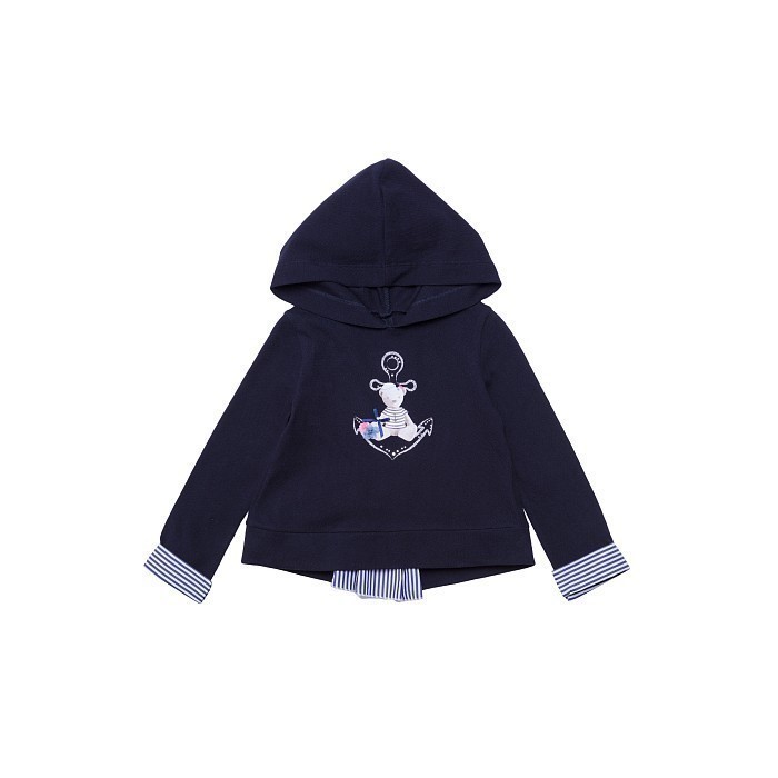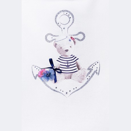 Джемпер Lapin House – это идеальный выбор для девочек! Изготовленный из 98% хлопка и 2% шелка, он украшен очаровательным принтом якоря с морячком. Нежная ткань с ярким дизайном создает неповторимый морской стиль. На фотографии видна аккуратная белая окантовка по краю и мягкая текстура ткани. Качество от бренда из Греции и внимание к деталям делают этот джемпер отличным выбором для вашего ребенка!