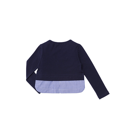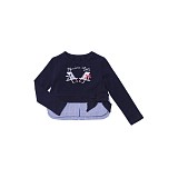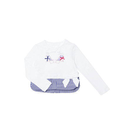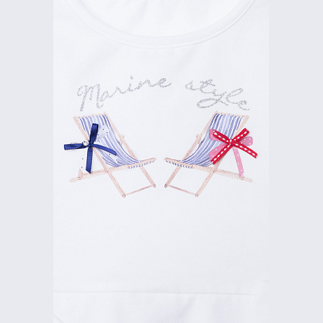 Джемпер Lapin House – это идеальный выбор для девочек! Изготовлен из 94% хлопка и 6% эластана, он украшен морским принтом с изображением двух стульев и бантиков. Нежная белая основа с яркими синими и красными акцентами создает уютное и в то же время стильное настроение. На фотографиях видна эластичная резинка по низу и аккуратная белая контрастная окантовка. Качество от бренда из Греции и внимание к деталям делают этот джемпер отличным выбором для вашего ребенка!