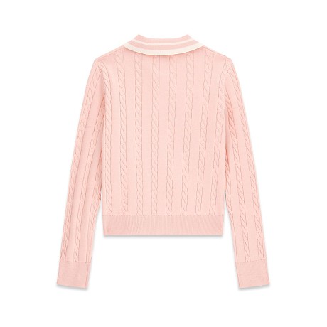 - 🎨 Дизайн: розовый цвет, косые узоры, воротник поло