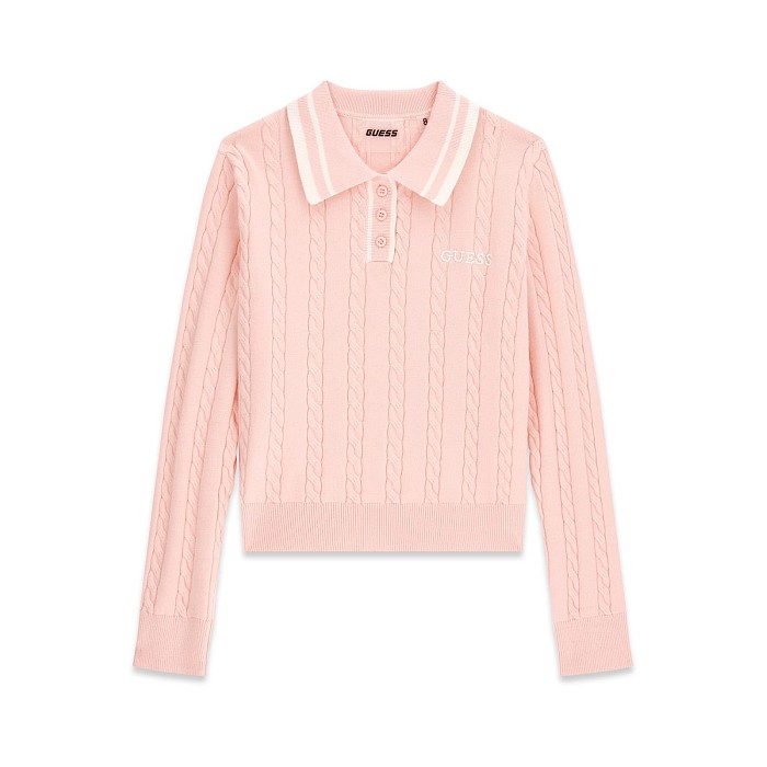 Розовый джемпер Guess с длинным рукавом и воротником поло для девочек