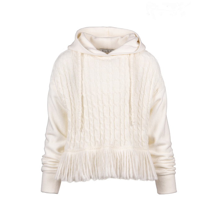 Джемпер (толстовка) для девочки Elsy – это идеальный выбор для холодной погоды! Изготовленная из комбинации акрила, шерсти, вискозы, хлопка и эластана, эта толстовка обеспечивает отличную терморегуляцию и комфорт. На фото видны кисти на рукавах и косички на воротнике, которые придают модели нежный и элегантный вид. Качество от итальянского бренда Elsy делает эту толстовку отличным выбором для вашего ребенка!