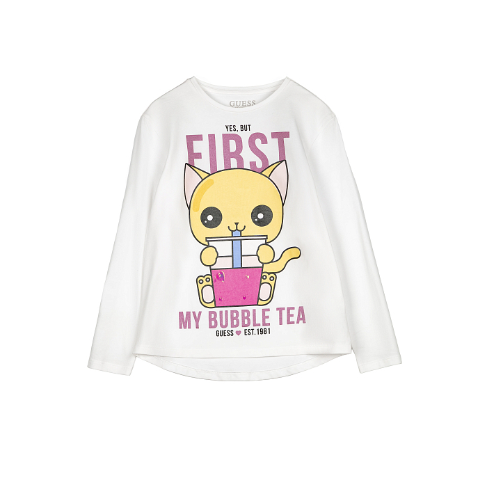 Фуфайка Guess – это идеальный выбор для девочек! Изготовленная из 95% хлопка и 5% эластана, она украшена очаровательным принтом кошки с чашкой чая. Мягкая и уютная, эта фуфайка создаст нежное настроение и обеспечит вашему ребенку комфорт. На фотографиях видна аккуратная текстура ткани, удобная посадка и мягкая окантовка по краю. Качество от бренда из США и внимание к деталям делают эту фуфайку отличным выбором для вашего ребенка!