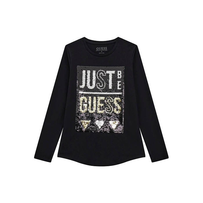 Фуфайка Guess – это идеальный выбор для девочек! Изготовленная из 95% хлопка и 5% эластана, она украшена стильным принтом Just Be Guess. Принт включает в себя надпись "Just Be Guess" и сердечки на черном фоне. Фуфайка имеет удобную посадку и мягкую текстуру ткани, что делает её идеальным выбором для повседневного использования. На фотографиях видна аккуратная вышивка и мягкая текстура ткани. Качество от бренда США и внимание к деталям делают эту фуфайку отличным выбором для вашего ребенка!