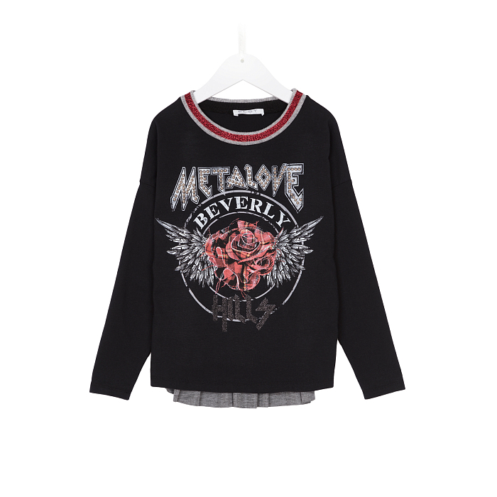 Футболка Elsy с принтом Metalove Beverly Hills – это стильный и комфортный выбор для вашего ребенка! Изготовлена из высококачественного материала: 95% хлопок, 5% эластан, 80% модал, 20% полиуретан. Футболка украшена ярким принтом с надписью Metalove Beverly Hills и красной розой с крыльями, что делает её необычной и привлекательной. На фото видна аккуратная окантовка по краю и мягкая текстура ткани. Качество от итальянского бренда Elsy и внимание к деталям делают эту футболку отличным выбором для вашего ребенка!