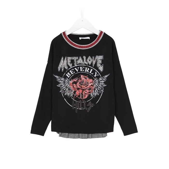 Футболка Elsy с принтом Metalove Beverly Hills – это стильный и комфортный выбор для вашего ребенка! Изготовлена из высококачественного материала: 95% хлопок, 5% эластан, 80% модал, 20% полиуретан. Футболка украшена ярким принтом с надписью Metalove Beverly Hills и красной розой с крыльями, что делает её необычной и привлекательной. На фото видна аккуратная окантовка по краю и мягкая текстура ткани. Качество от итальянского бренда Elsy и внимание к деталям делают эту футболку отличным выбором для вашего ребенка!