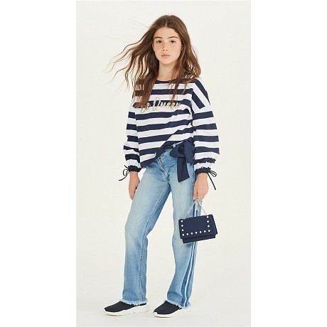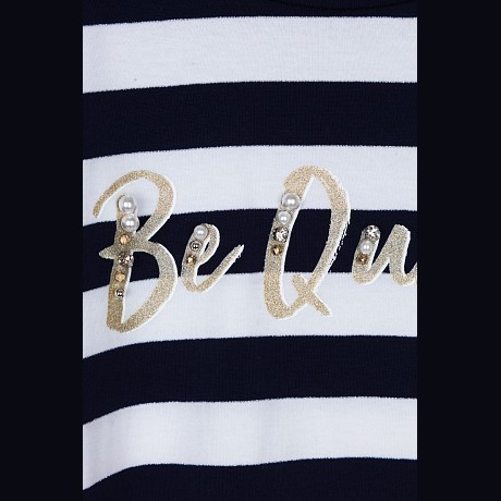 Футболка Elsy с принтом Be Queen – это идеальный выбор для маленьких принцесс! Изготовленная из 93% хлопка, 5% эластана, 1% полиэстера и 1% полиамида, она обеспечивает отличную посадку и комфорт. Стильные черно-белые полосы и золотистый принт Be Queen придают модели неповторимый шарм. На фотографии видна аккуратная вышивка и эластичные завязки на рукавах. Качество от итальянского бренда Elsy и внимание к деталям делают эту футболку отличным выбором для вашего ребенка!