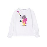 Футболка Elsy – это идеальный выбор для девочек! Изготовленная из 95% хлопка и 5% эластана, она украшена очаровательным принтом лисы с сердечками и цветными акцентами. Нежная белая основа с яркими розовыми и желтыми деталями создает игривое и в то же время уютное настроение. На фотографиях видна аккуратная розовая контрастная окантовка по краю и мягкая текстура ткани. Качество от бренда из Италии и внимание к деталям делают эту футболку отличным выбором для вашего малышки!