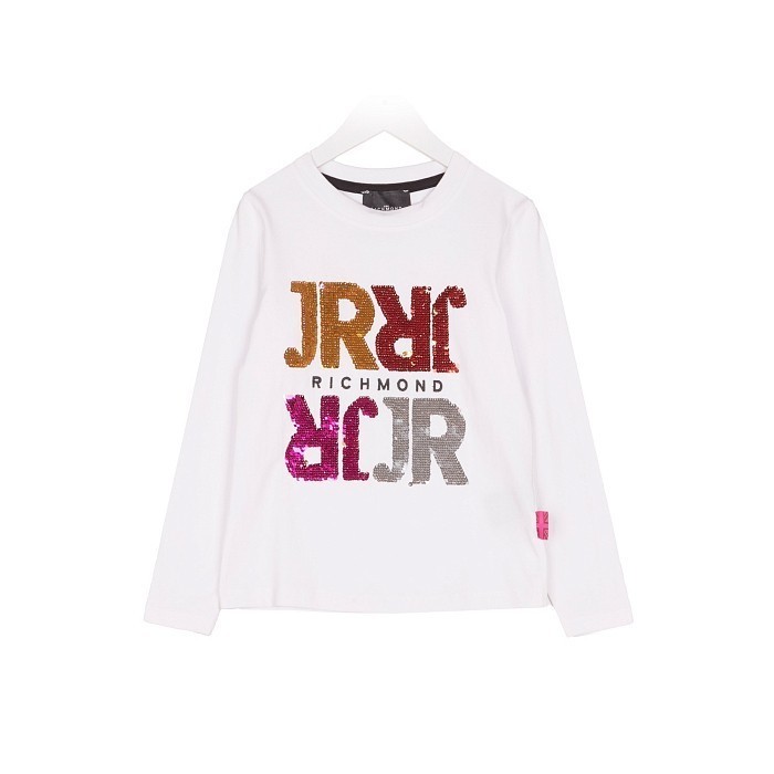 Футболка John Richmond – это идеальный выбор для маленьких модниц! Изготовленная из 95% хлопка и 5% эластана, она украшена блестящим принтом с яркими буквами "JRJR" и "RICHMOND". Футболка идеально подходит для девочек от 2 до 12 лет. На фотографии видна блестящая текстура принта, яркие цвета и мягкая ткань. Качество от бренда John Richmond и внимание к деталям делают эту футболку отличным выбором для вашего ребенка!
