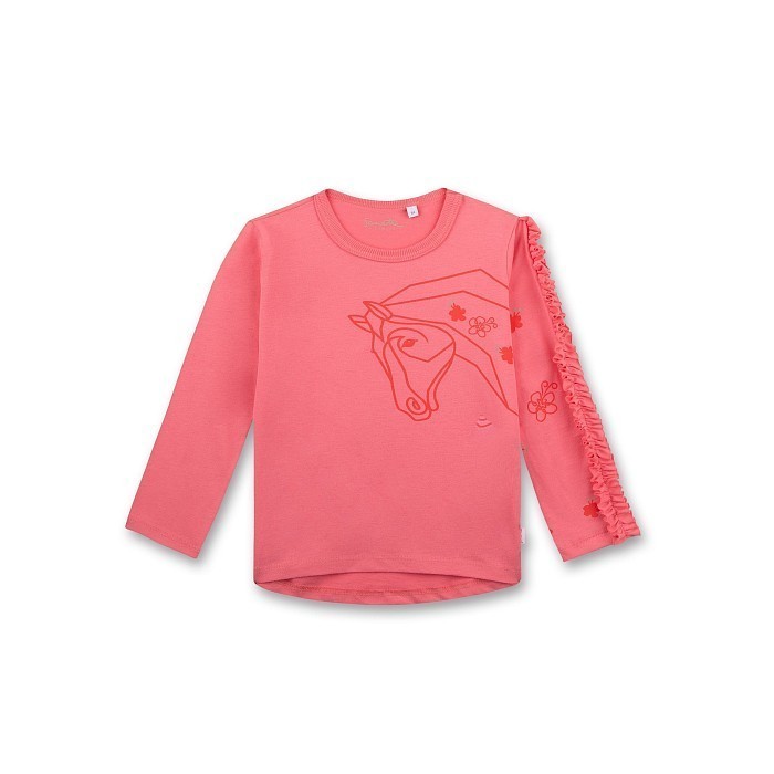 Футболка для девочек Sanetta – это идеальный выбор для маленьких модниц! Изготовленная из 100% хлопка органического производства, она украшена очаровательным принтом лошади и цветочками. Нежная розовая основа с ярким рисунком создает легкое и в то же время стильное настроение. На фотографиях видна аккуратная отделка на рукавах в виде оборок и цветочные аппликации. Качество от бренда Sanetta и внимание к деталям делают эту футболку отличным выбором для вашего ребенка!